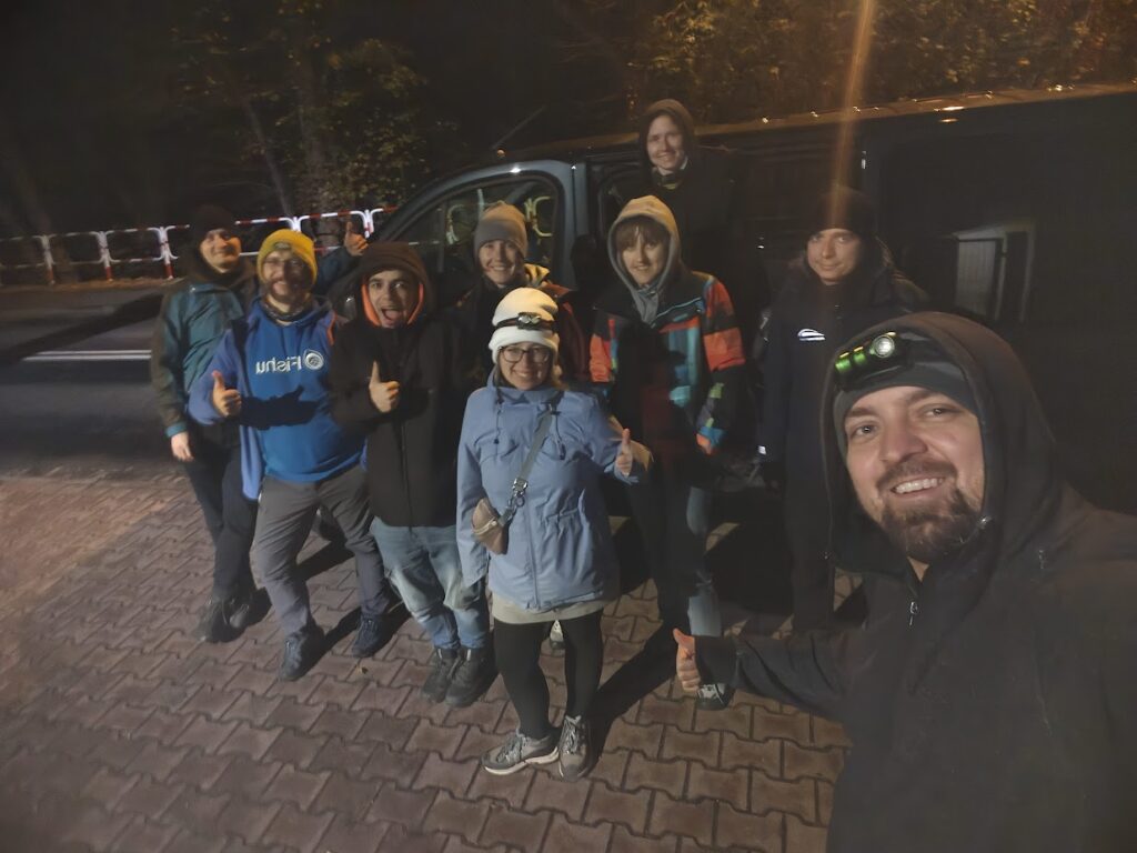 Tym co odróżniało nas od innych zespołów był środek transportu i liczba osób. Było nas dziewięcioro i podróżowaliśmy wynajętym busem. Z jednej strony powoduje to zwiększone ryzyko szczegółowych kontroli na granicach, ale z drugiej obniża koszty przedsięwzięcia i umożliwia większej liczbie osób skorzystanie z raz ułożonego planu. Na zdjęciu powyżej wszyscy uczestnicy wyprawy. Pierwszy rząd od lewej: Dominisia_krk, kranfagel, marcin3243 oraz drugi rząd od lewej: kara-kum, m2mPL, Fishu, daksya (Agnieszka), daksya (Piotr), piechurek7.