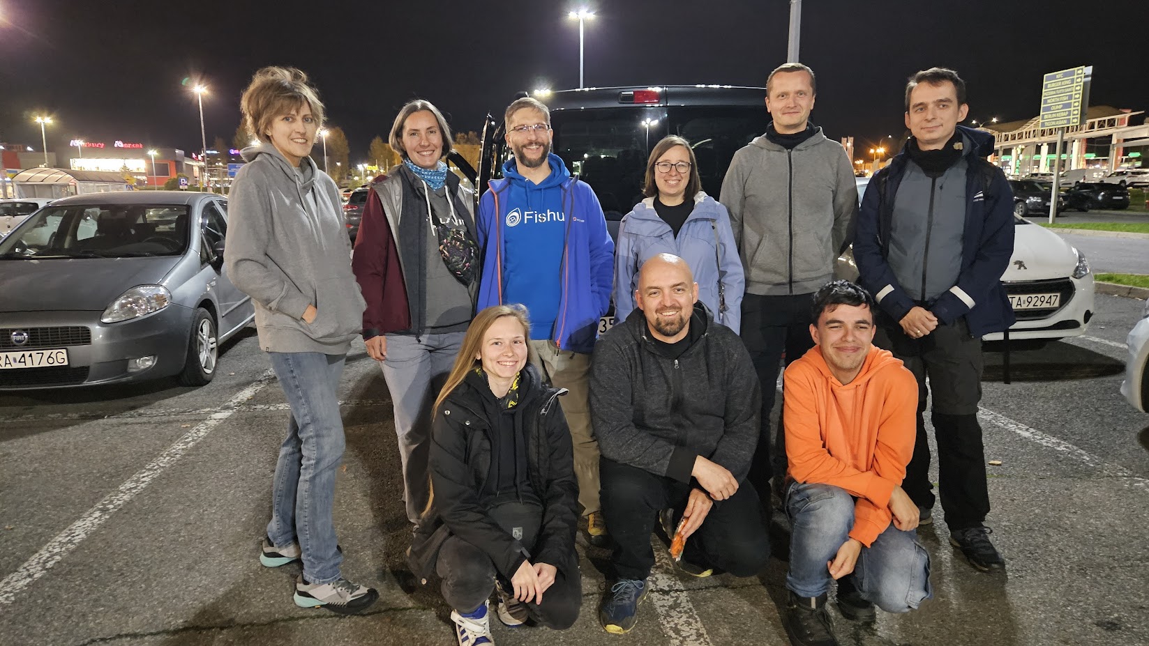 Tym co odróżniało nas od innych zespołów był środek transportu i liczba osób. Było nas dziewięcioro i podróżowaliśmy wynajętym busem. Z jednej strony powoduje to zwiększone ryzyko szczegółowych kontroli na granicach, ale z drugiej obniża koszty przedsięwzięcia i umożliwia większej liczbie osób skorzystanie z raz ułożonego planu. Na zdjęciu powyżej wszyscy uczestnicy wyprawy. Pierwszy rząd od lewej: Dominisia_krk, kranfagel, marcin3243 oraz drugi rząd od lewej: kara-kum, m2mPL, Fishu, daksya (Agnieszka), daksya (Piotr), piechurek7.